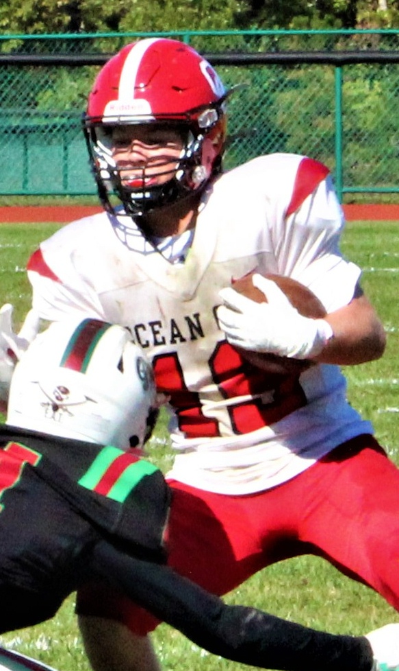 Mr. Automatic: Brendan McGonigle kicked one of two field goals from 22 yards – giving him six for his career – and improved to 22 for 25 with extra points this season. One of his misses was a 35-yard PAT attempt following an OCHS penalty. McGonigle leads all Cape-Atlantic League kickers in extra points and field goals this year. He is 66 for 74 kicking extra points in his career and 6 for 8 on field goal attempts. That works out to 84 kicking points.