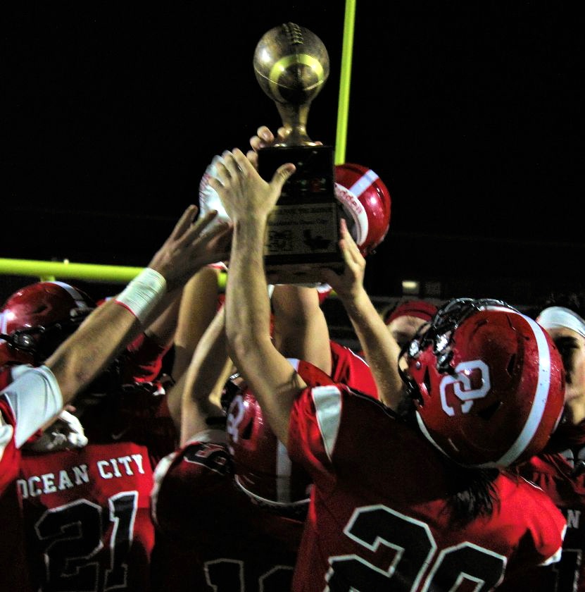 Catching Woolley: Friday’s win was number 47 for Kevin Smith as OCHS head coach, tying him for third all-time in football victories at Ocean City with Ed Woolley. Smith is now 47-50 in his 10th season. Ed Woolley was 47-34-1 in nine seasons, including a South Jersey championship in his last season. When he completes this season, Smith will be the second OCHS football coach to coach 100 games. Gary Degenhardt coached 156.