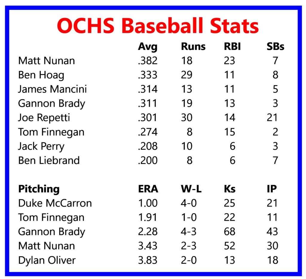 The Ocean City pitching has not allowed a run in its first two Group 3 victories – 10-0 over Camden Tech and 3-0 over Lacey. Junior Tom Finnegan, who started slowly with a sore shoulder this season, will get the start. He has pitched 11 strong innings in his two starts.
