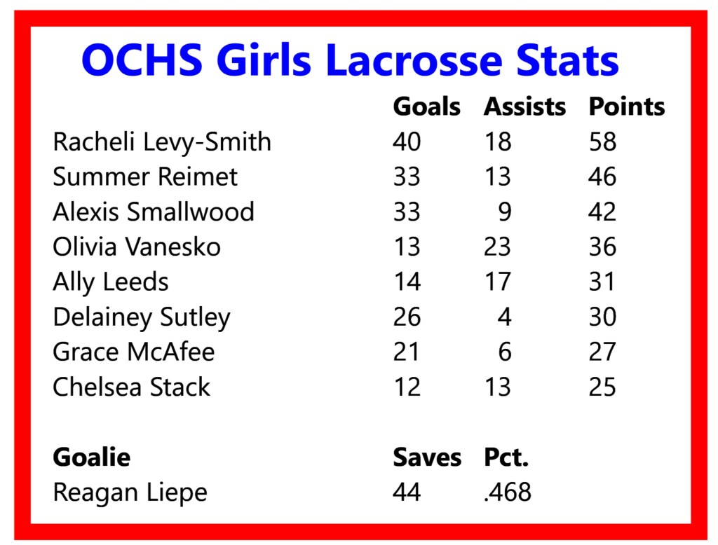 The Raiders and Quakers have already played this season. Moorestown came down to the Tennessee Avenue Complex in late April and defeated OCHS, 13-7. Alexis Smallwood scored three times for the Raiders with Racheli Levy-Smith and Delainey Sutley each scoring twice.