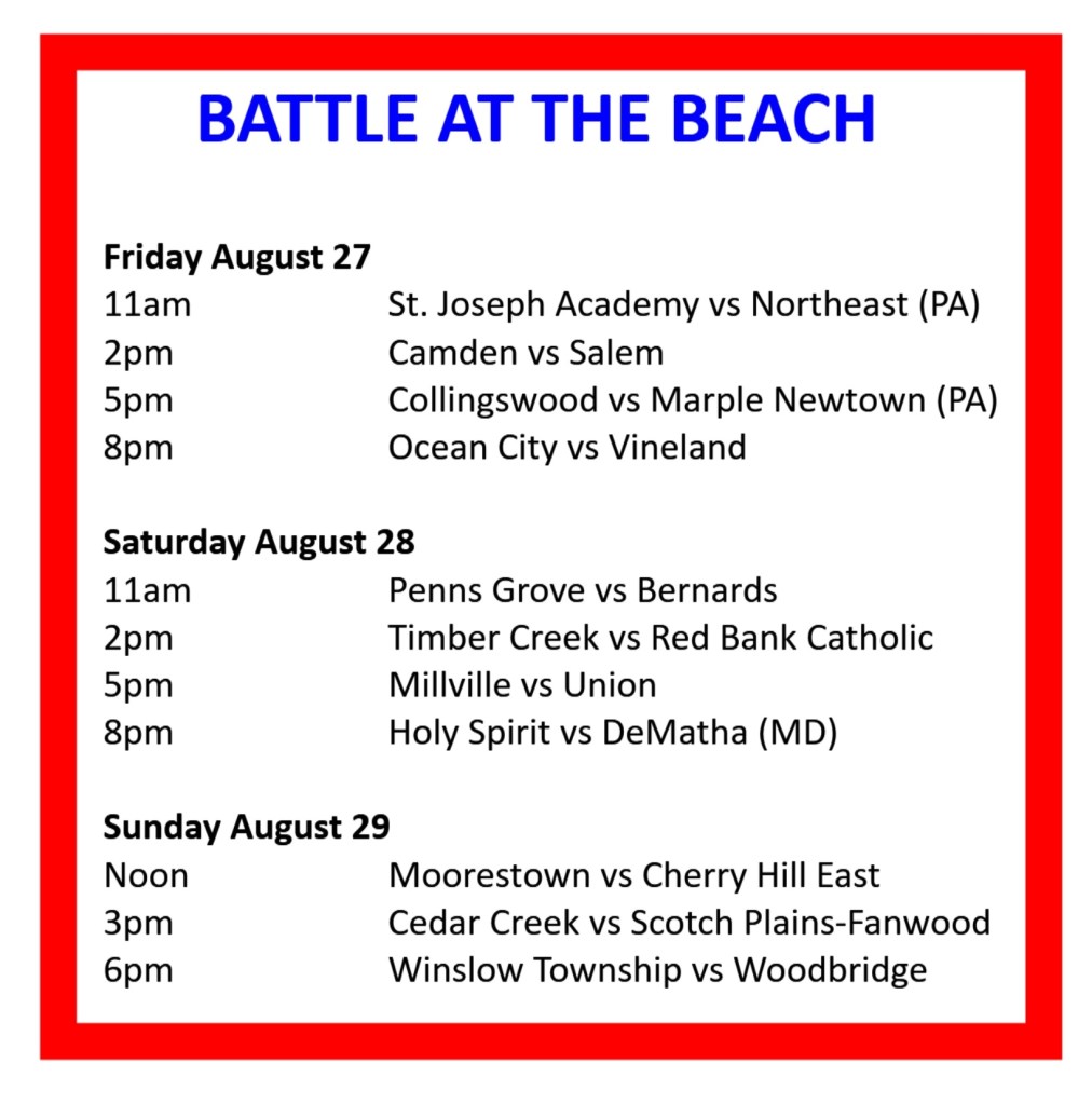 It’s called the Battle at the Beach and has been created by the West Jersey Football League Coaches Association, with four games Friday, four on Saturday and three more on Sunday.