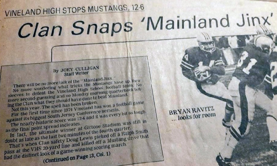 Vineland had not beaten Mainland in seven years but we shut down their offense that year and defeated them, 12-6.